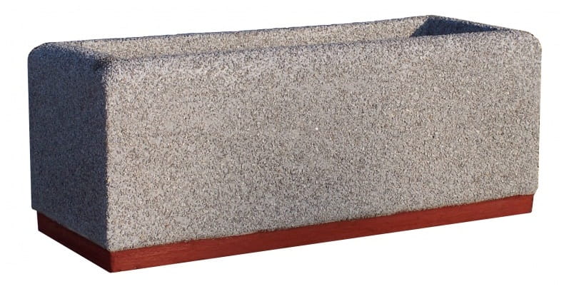 Donica betonowa prostokątna 100x40x40cm 77242 Donice parkowe betonowe Materiał: kamień rzeczny, grysy Długość (cm): 100 Szerokość (cm): 40 Wysokość (cm): 40 Waga (kg): około 190 Donica dla miłośników klasyki stawiających na jakość wykonania. Wyróżnia się minimalistycznym designem, choć prostota projektu została przełamana przez węższe dno odznaczające się innym kolorem na tle całości. Zabieg ten nadaje tak dużemu przedmiotowi lekkości wizualnej, tworząc iluzję unoszenia się nad ziemią. Sama donica dostępna jest w sześciu wersjach wykończenia – czterech rodzajach grysu i dwóch kolorach kamienia rzecznego. Betonowe wykonanie sprawia, że donica wyjątkowo trwała i zniesie każdą pogodę, od siarczystego mrozu, po palące słońce. Dzięki standardowym wymiarom 100 cm długości oraz 40 cm wysokości i 40 cm szerokości idealnie sprawdza się zarówno w parku, jak i prywatnym ogrodzie.