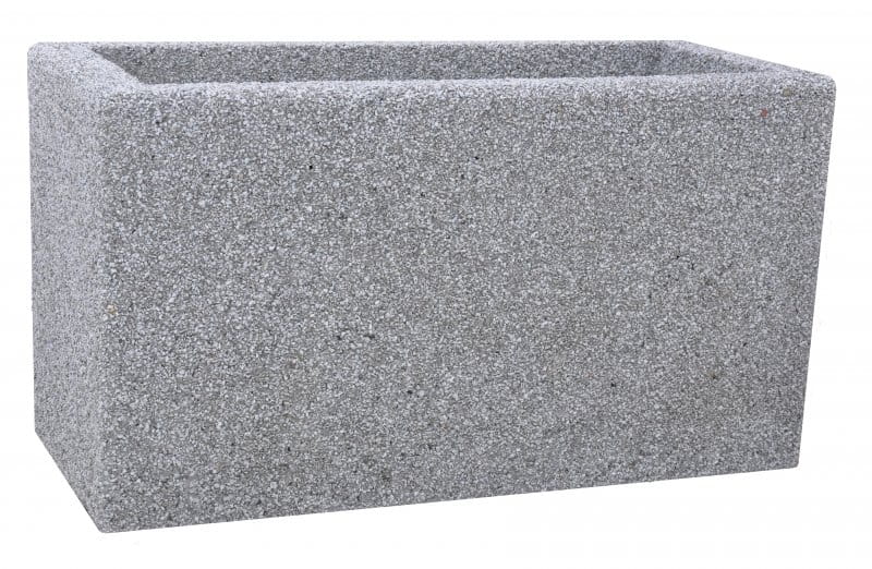 Donica betonowa prostokątna 90x40x50 77251 Donice parkowe betonowe Materiał: kamień rzeczny, grysy Długość (cm): 90 Szerokość (cm): 40 Wysokość (cm): 50 Waga (kg): około 270 To idealny produkt dla wszystkich osób, które interesuje klasyczna forma i cenią sobie elegancję, jaką może reprezentować minimalistyczna forma. Praktyczna donica wykonana z betonu przeznaczona jest głównie do parków i zielonych miejsc w centrach miast. Dzięki sporym wymiarom (90 cm długości, 50 cm wysokości i 40 cm szerokości) pomieści nawet dwa rzędy kwiatów. Mogą to być zarówno rośliny stojące, jak i zwisające. Dostępnych jest sześć rodzajów wykończenia: grys biały, grys granitowy, grys biało-czarny, grys sjenitowy, oryginalny kamień rzeczny oraz kamień rzeczny barwiony na czerwono. Solidny materiał zapewnia donicy długowieczność niezależnie od warunków atmosferycznych panujących przez okrągły rok.