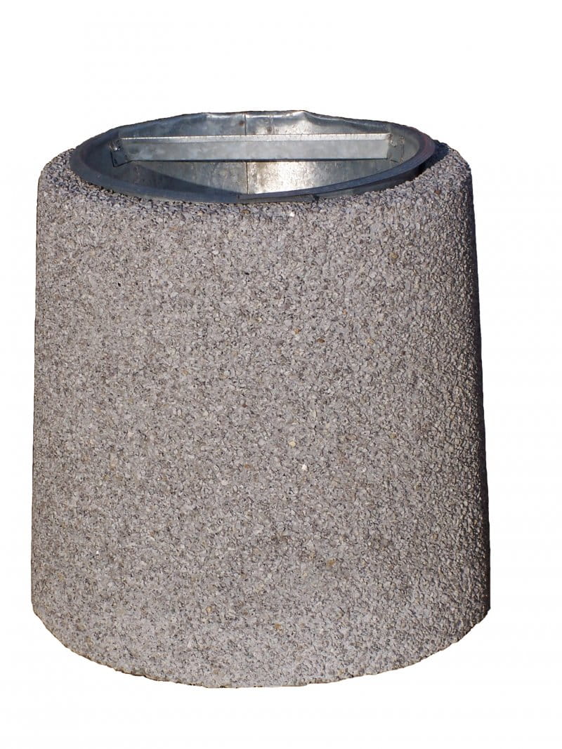 Kosz betonowy okrągły 26 litrów 77117(kosze parkowe) Wysokość (cm): 46 Średnica (cm): górna – 42, dolna 47 Pojemność (l): 26 Waga (kg): 105 Materiał: kamień płukany, grysy. Kosz może posiadać wkład metalowy lub obręcz na worek. W parkach, lasach, ale również na przystankach czy parkingach nie zawsze sprawdzają się kosze na śmieci wykonane z metalu, które są naturalnie narażone na wiele niekorzystnych czynników wpływających na trwałość tak materiału, jak i koloru wykończenia. Właśnie dlatego warto zainteresować się pojemnikami wykonanymi z betonu, który przez cały rok opiera się zmianom temperatury czy opadom atmosferycznym. 26-litrowa pojemność w zupełności wystarczy przy standardowej eksploatacji w miejscu publicznym. Średnica zwęża się ku górze – od 47 do 42 cm. Wysokość 46 cm ułatwia wygodne usuwanie odpadów. W zależności od preferencji oferujemy wersję z metalowym wkładem lub specjalną obręczą na worki. 90 kg wagi przekłada się na stabilne ustawienie. Wybierz jeden z 6 dostępnych wariantów wykończeniowych – grysu lub kamienia rzecznego.