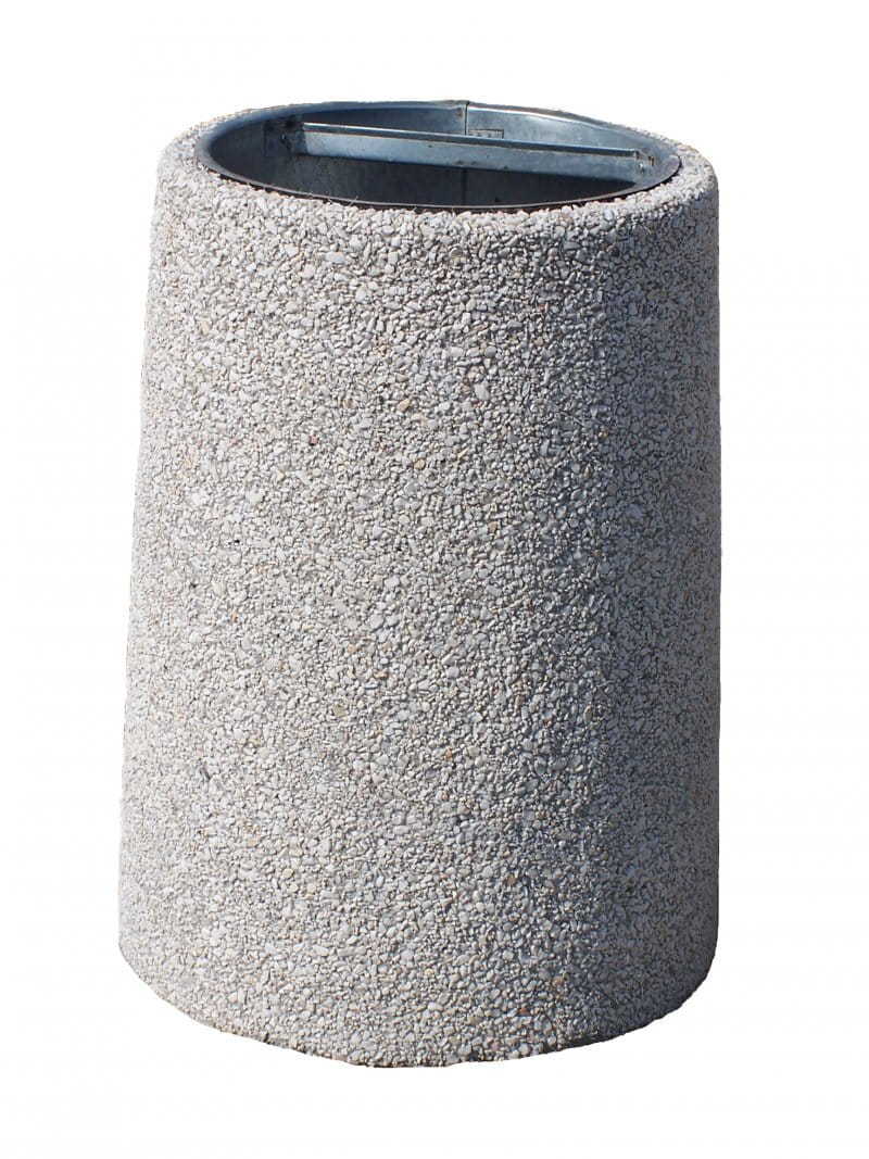 Kosz betonowy okrągły 40 litrów 77118 (kosze parkowe) Wysokość (cm): 60 Średnica (cm): górna – 43, dolna 52 Pojemność (l): 40 Waga około (kg): 140 Materiał: kamień płukany, grysy. Kosz może posiadać wkład metalowy lub obręcz na worek. Kosz betonowy „okrągły” udowadnia, jak duży potencjał aranżacyjny tkwi w minimalistycznych elementach małej architektury. To, co dla jednych będzie wyłącznie pojemnikiem na śmieci, innym zwróci uwagę na styl, w jakim utrzymywane jest otoczenie, na przykład parku, firmy czy domu. Klienci cenią w tym modelu możliwość wyboru – 40-litrowy wkład może być metalowy lub workowy dzięki montażowi specjalnej obręczy. Przy wadze 140 kg nie trzeba się martwić o stabilność. Wysokość kosza wynosi dokładnie 60 cm. Zdecyduj, w jakim wykończeniu ma być on dostarczony. Dostępne warianty to: grys granitowy, grys biały, grys sjenitowy, grys biało-czarny, kamień rzeczny i kamień rzeczny barwiony na czerwono. W zależności od charakteru otoczenia naturalnego lub architektonicznego odpowiedni wybór może podkreślić wyjątkowość danej przestrzeni.