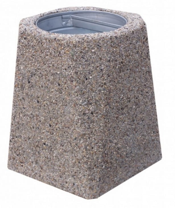 Kosz betonowy trapezowy 40 litrów 77144 (kosze parkowe) Wysokość (cm): 61Szerokość dolna (cm): 53 Pojemność (l): 40 Waga (kg): 200 Materiał: kamień płukany, grysy. Kosz może posiadać wkład metalowy lub obręcz na worek. Poszukujesz betonowego kosza, ale interesuje Cię przede wszystkim jego użyteczność, podczas gdy design nie ma dla Ciebie większego znaczenia? To w pełni zrozumiałe – prezentowany model wpisuje się w Twoje oczekiwania. Jego konstrukcja jest raczej standardowa, a dzięki temu bardzo uniwersalna. Oznacza to, że gdziekolwiek zamontujesz prezentowany kosz, nie zaburzysz w ten sposób architektury przestrzeni i nie zdominujesz jej jednym elementem, jakim jest śmietnik. Ty wybierasz niepozorny, ale praktyczny i w zupełności spełniający swoją rolę kosz, a my Ci go dostarczamy w korzystnej cenie. To naprawdę dobre rozwiązania niezależnie od tego, jakiego rodzaju przestrzenią zarządzasz.