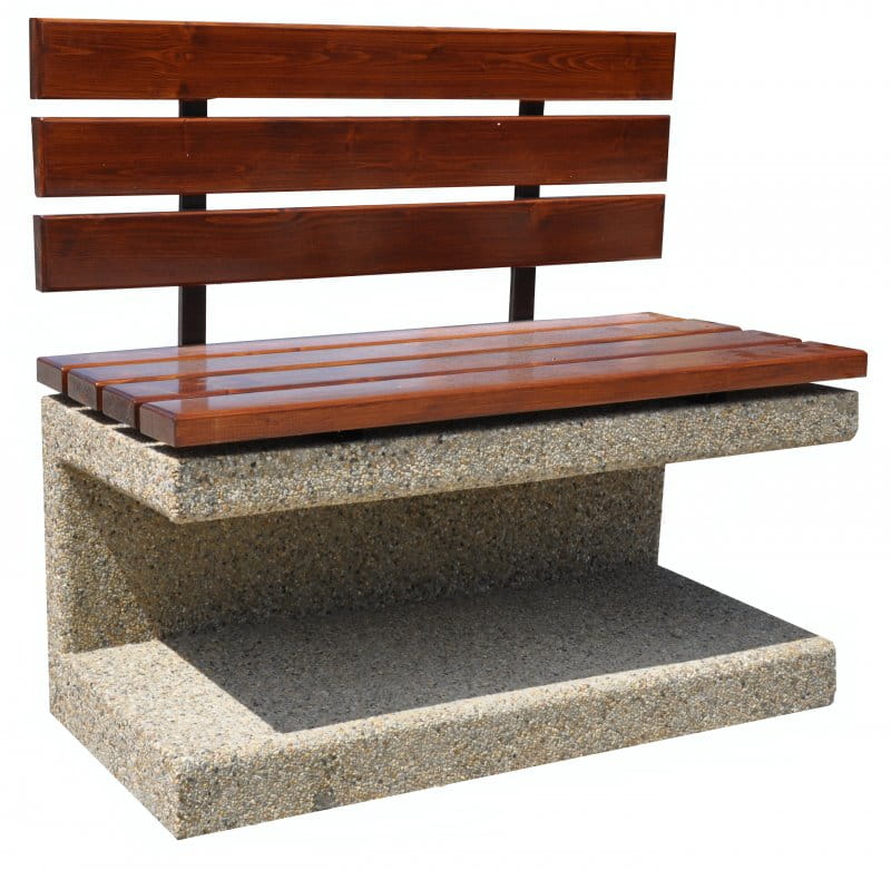 Ławka Nowoczesna z oparciem 77414 Wysokość całkowita(cm): 95 Długość całkowita (cm): 110 Wysokość siedziska (cm): 55 Szerokość całkowita (cm): 50 Grubość listew(cm): 4 Waga około 300 kog Części metalowe zabezpieczone farbami antykorozyjnymi lub ocynkowane. Elementy drewniane moga być malowane farbami zachowującymi urok drewna. Do uzgodnienia sposób przytwierdzenia do podłoża. Kto powiedział, że elementy małej architektury muszą być klasyczne i wpisujące się w stylistykę wypracowaną jeszcze w XIX czy XX wieku? Prezentujemy nowoczesny model ławki z oparciem, którego betonowa konstrukcja gwarantuje stabilne ustawienie i trwałość obliczoną na lata. Charakterystyczna podstawa w kształcie litery „C” może być pokryta jednym z 6 wykończeń: kamieniem rzecznym (standardowym lub barwionym na czerwono) albo grystem (granitowym, białym, biało-czarnym lub sjenitowym). Intensywny, wyrazisty kolor drewna daje jeszcze nowocześniejszy kolor. Oparcie jest wygodne, idealne zgrane z wysokością siedziska na poziomie 55 cm. Łączny ciężar modelu wynosi ok. 300 kg. Skontaktuj się w sprawie sposobu przytwierdzenia do ziemi.