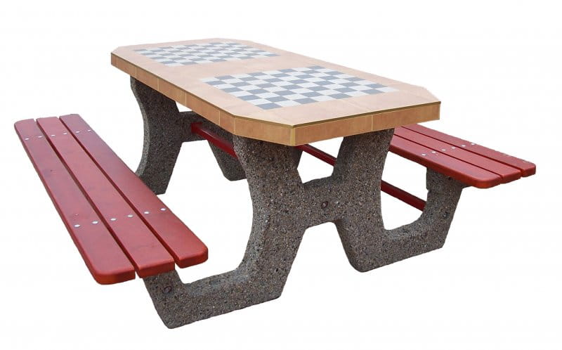 Stół do gry w szachy 77503 Długość całkowita (cm): 200 Szerokość całkowita (cm): 200 Wysokość stołu (cm): 78 Wysokość ławy (cm): 44 Szerokość stołu (cm): 85 Szerokość ławy (cm): 38 Waga (kg): ok.400 Grubość listew (cm): 4 Blat wykonane z płytek gresowych, przyklejonych mrozoodpornym klejem. istnieje możliwość wykonania blatu do gry w „chińczyka” lub innej gry planszowej Części metalowe zabezpieczone farbami antykorozyjnymi lub ocynkowane. Elementy drewniane mogą być malowane farbami zachowującymi urok drewna. Do uzgodnienia sposób przytwierdzenia do podłoża. Szachy to gra, która potrafi wciągnąć na długi czas. Jej entuzjaści coraz częściej spotykają się nie tylko w klubach i prywatnych domach, ale również pod chmurką, ponieważ specjalne, betonowe stoły do gry są popularnym rozwiązaniem, stosowanym w parkach, na ulicach i w ośrodkach wypoczynkowych oraz działkowych. Prezentowany stół ma idealne wymiary do gry przy wysokości 78 cm. Do zestawu jest dołączona ława, na której wygodnie mogą przesiadywać cztery osoby. Na blacie z płytek gresowych znajdują się dwa pola do gry, zachęcamy również do wyboru innych popularnych plansz. Stół jest odporny na mróz i przypadkowe zniszczenia. Metalowe elementy są dodatkowo ocynkowane lub pokryte farbami antykorozyjnymi. Łączna waga ponad 400 kg zapewnia stabilność. W zależności od indywidualnych potrzeb i ustaleń na rożne sposoby można zaprojektować sposób mocowania do podłoża.